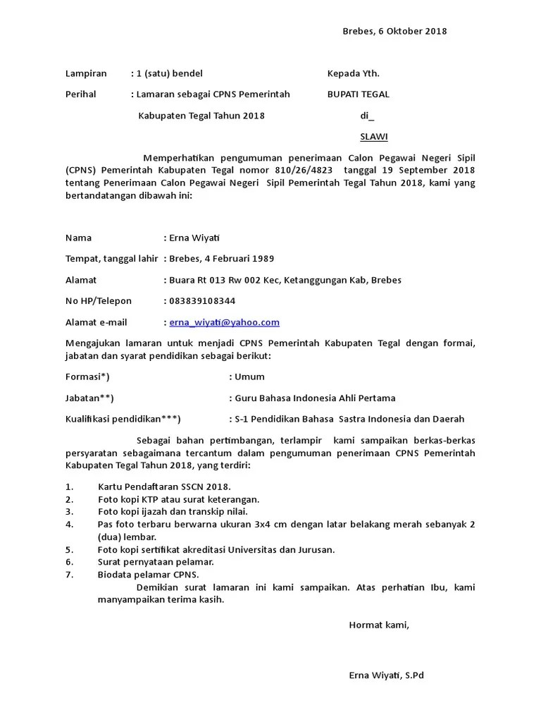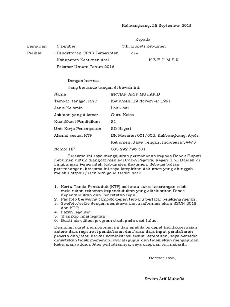 Surat pernyataan cpns (download) surat pernyataan pppk non guru (download). 4) setiap pelamar pppk guru wajib menyampaikan surat lamaran yang. Calon pegawai negeri sipil (cpns) formasi disabilitas. Format surat lamaran untuk seleksi cpns berbeda untuk setiap instansi, sehingga dik lulus perlu . Surat lamaran ditujukan kepada bupati bangkalan, diketik menggunakan.